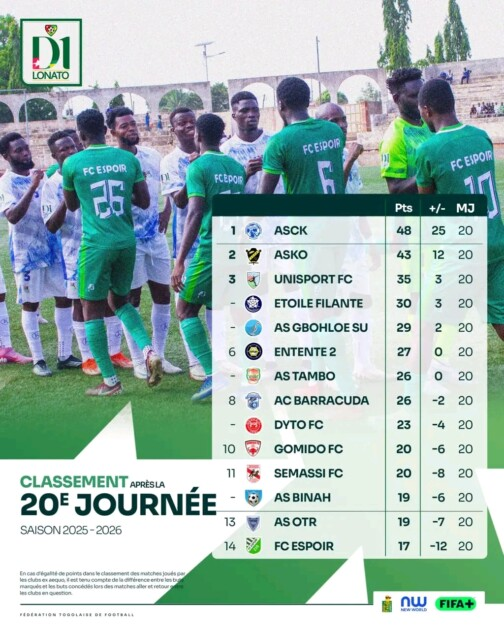 En revanche, la situation se complique sérieusement pour Semassi. Battus une nouvelle fois, les Guerriers de Tchaoudjo s’enlisent dangereusement dans la zone rouge. Malgré quelques signes de reprise ces dernières semaines, le club replonge dans une spirale inquiétante où chaque match devient décisif pour sa survie en D1.