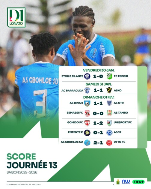 Cette clôture de la phase aller, marquée autant par l’intensité sportive que par des débordements regrettables, appelle à la vigilance. La Fédération togolaise de football devra se prononcer sur les incidents de Sokodé, pendant que les clubs profiteront de la trêve pour affiner leurs ambitions.