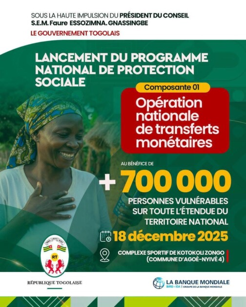La cérémonie officielle de lancement est prévue le 18 décembre 2025 au complexe sportif de Kotokoli-Zongo, en présence des autorités nationales, des partenaires techniques et financiers ainsi que des acteurs sociaux impliqués.